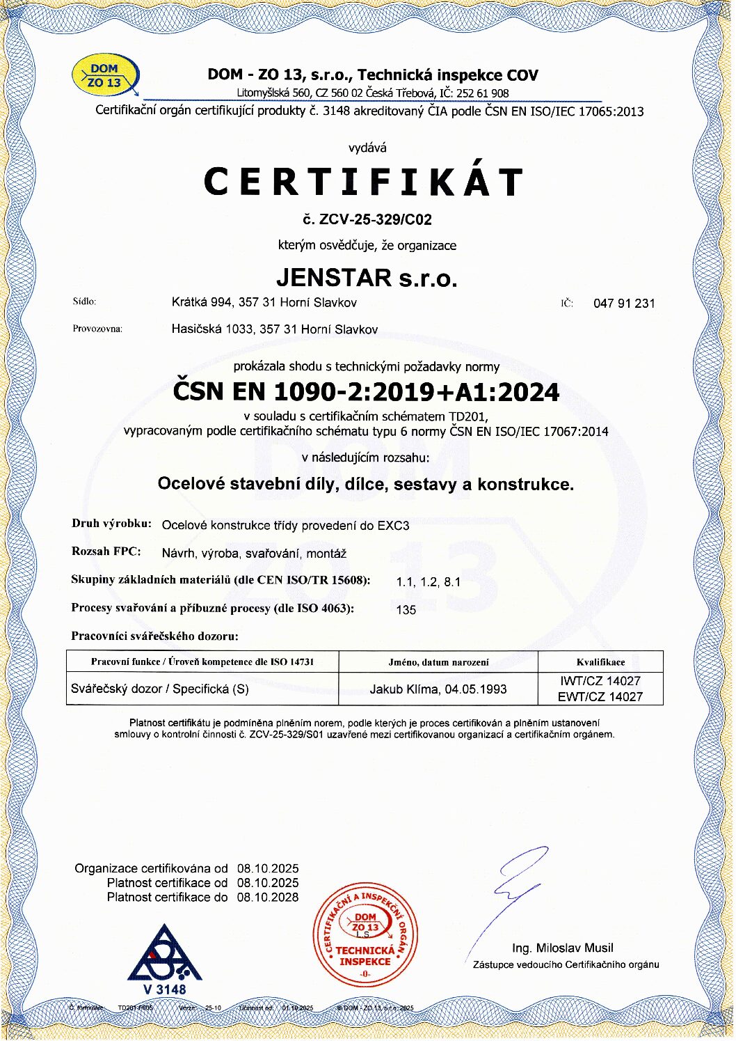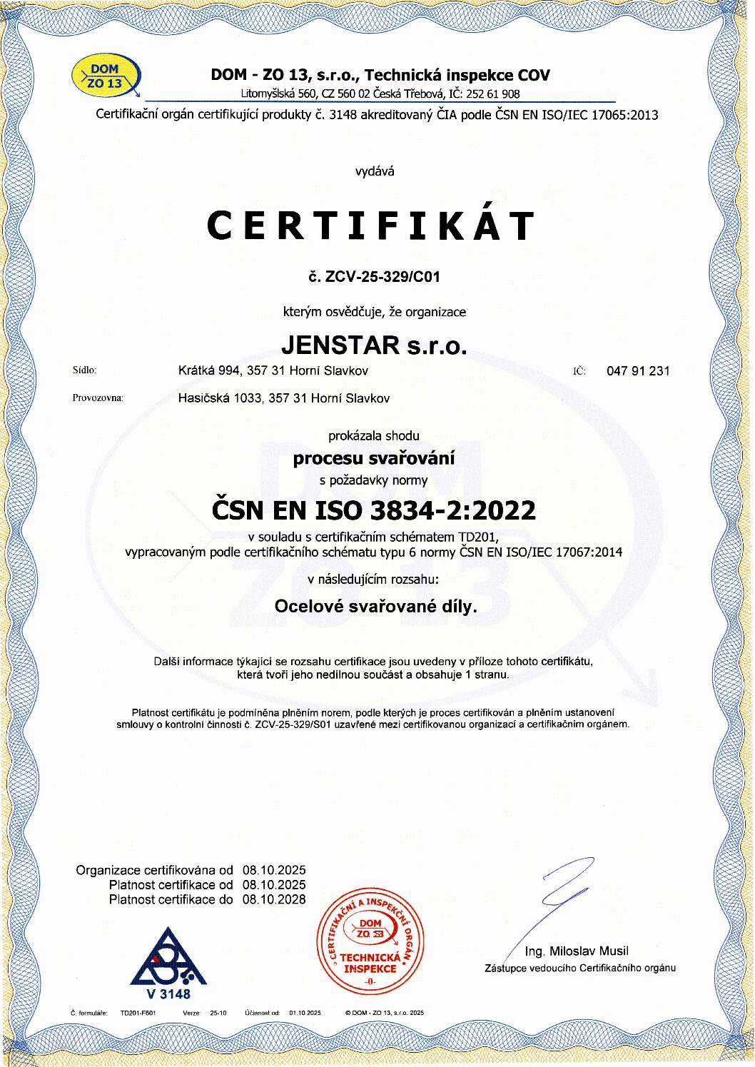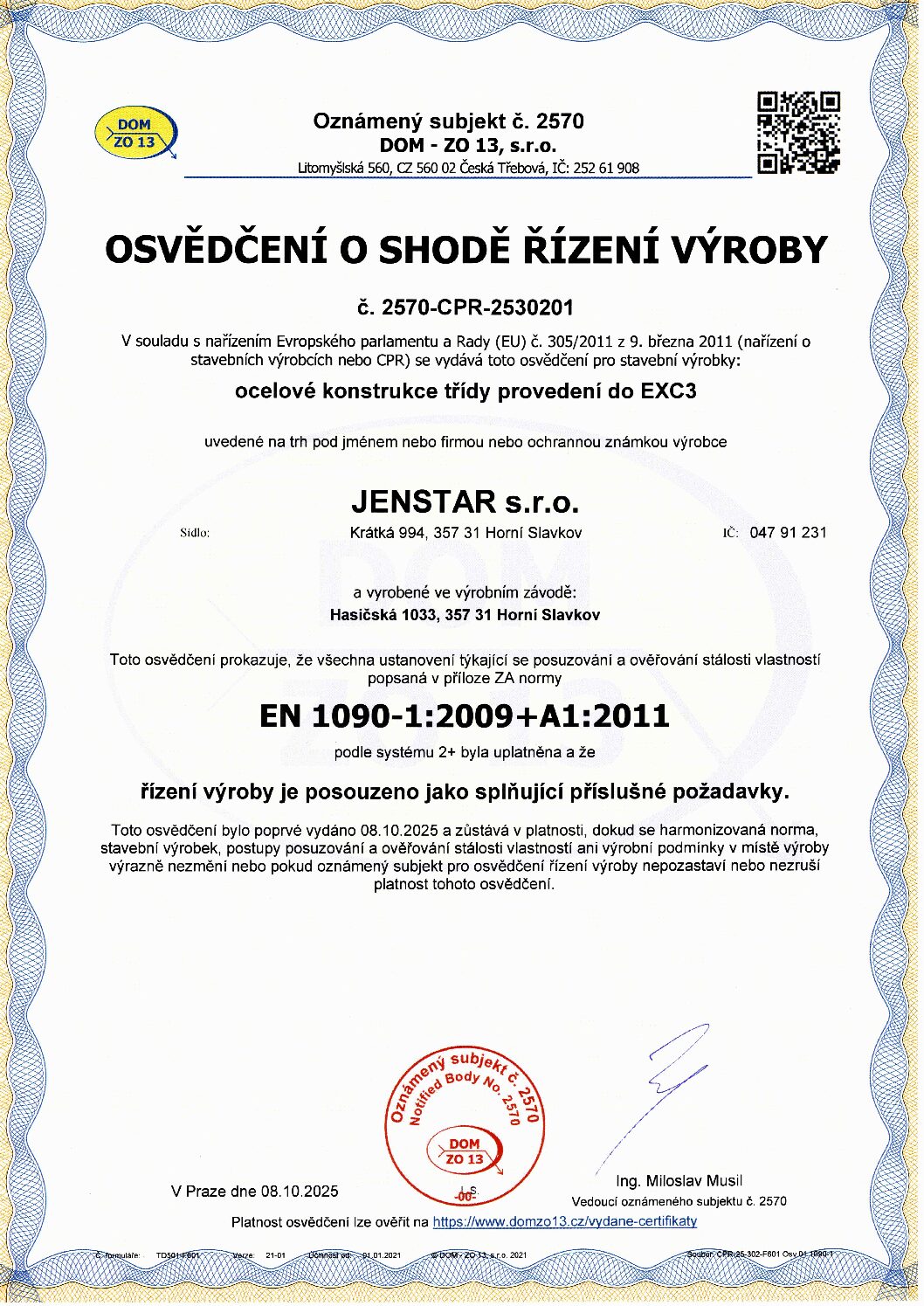 Zde se můžete podívat na certifikáty udělené společnosti Jenstar.